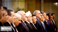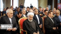 Präsident Rohani betonte, dass die militärischen Fähigkeiten der IR Iran nicht für Angriffe genutzt werden, sondern als Abschreckung, und fügte hinzu: "Die Botschaft der Islamischen Revolution Irans ist: Beendigung von Krieg und Angriffen, Beendigung der Unterstützung des Terrorismus und der Sanktionen, und ein friedliches Zusammenleben."