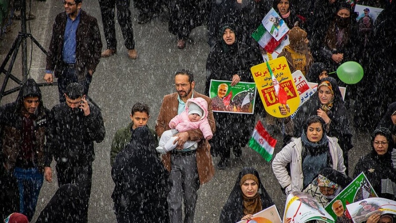 Millionen Iraner gingen am heutigen Dienstag landesweit auf die Straßen, um den 41. Jahrestag des Sieges der Islamischen Revolution zu feiern. Zum Abschluss der Kundgebungen wurde eine Erklärung verlesen, in der die Notwendigkeit hervorgehoben wurde, gegenüber den Intrigen der Weltarroganz, mit den USA an der Spitze, wachsam zu bleiben. Die Teilnehmer der Kundgebungen erklärten ihre Entschlossenheit, für den Terror an General Soleimani und dem stellvertretenden Befehlshaber der irakischen Volksmobilmachungskräfte, Abu Mahdi al-Muhandis, an den Vereinigten Staaten Vergeltung zu üben.