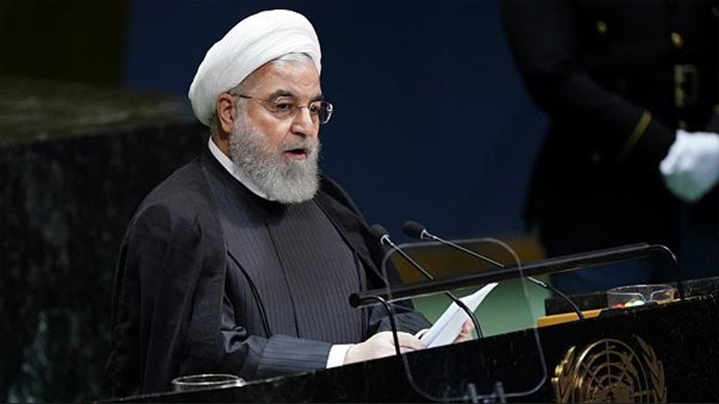 Rohani erklärte am 25. September 2019 bei seiner Rede vor der UN-Generalversammlung die Haltungen Irans gegenüber den regionalen und internationalen Fragen und legte den Friedensplan "Koalition der Hoffnung" als "Initiative des Hormuser Friedens" vor.