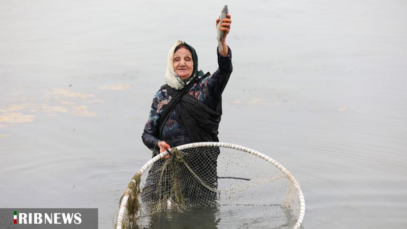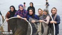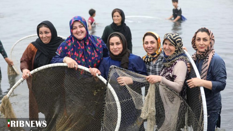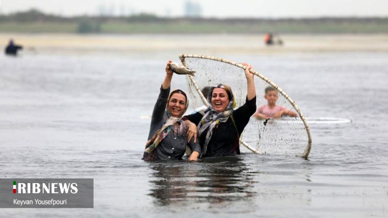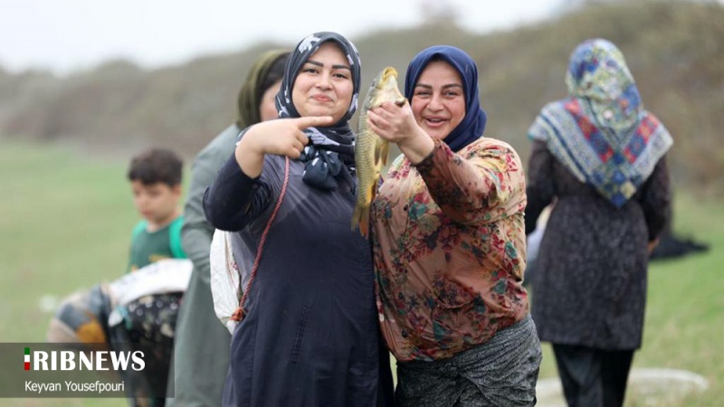 Landwirte gehen nach Abschluss der Bewässerung der landwirtschaftlichen Flächen fischen. In diesem Jahr führten zum ersten Mal Frauen im zentralen Teil der Stadt Babol diese Zeremonie durch.