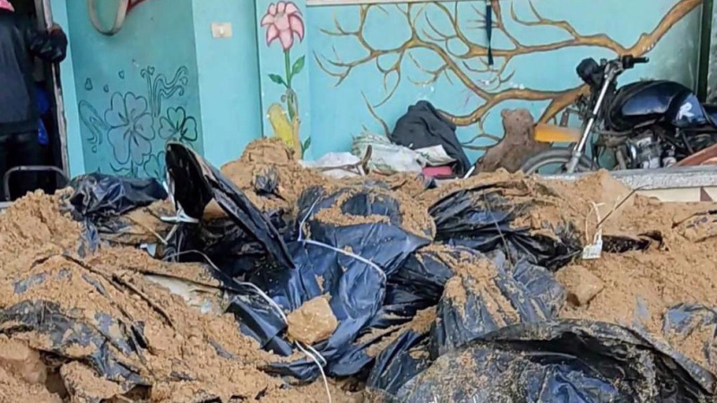Bürger und Rettungsorganisationen im Gazastreifens fanden die Leichen von nahezu 30 Palästinensern, die von den Besatzern erschossen wurden, unter einem Haufen aus Schutt und Müll in der Stadt Beit Lahia im Norden des Gazastreifens. Aktivisten sagten, die Leichen eines grausamen Verbrechens seien in schwarzen Plastiktüten, mit gefesselten Händen und verbundenen Augen gefunden worden.