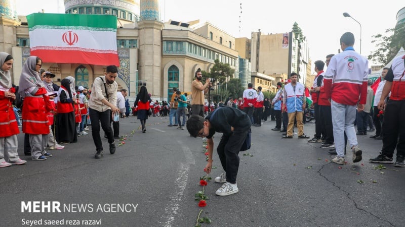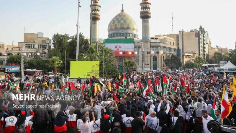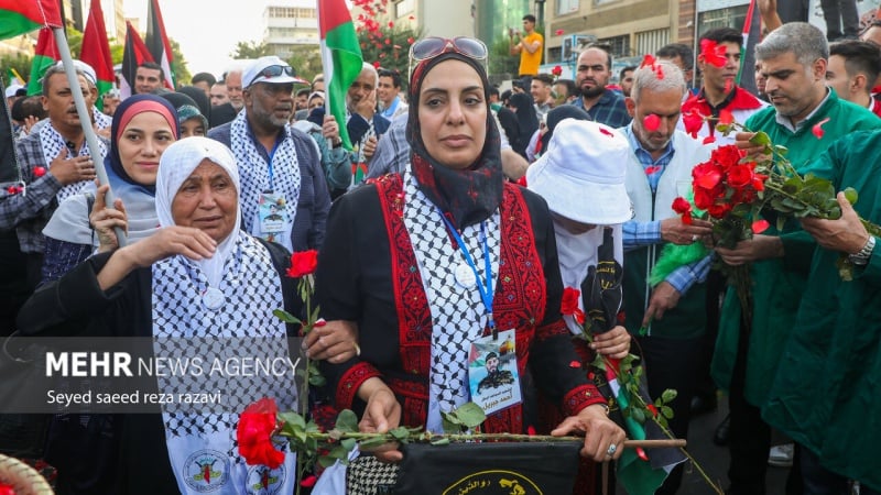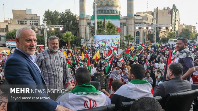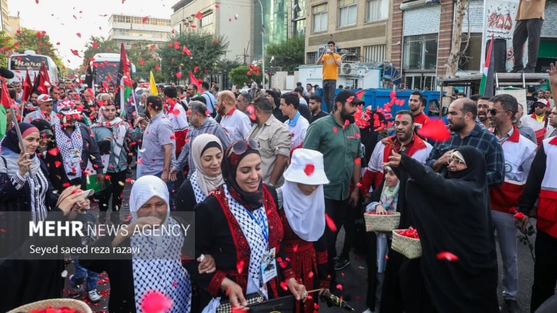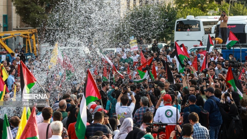 Am Dienstagabend begrüßten die Bürger Teherans eine Gruppe von Familien der Märtyrer aus Gaza, indem sie die Parole „Nieder mit Israel, Nieder mit Amerika“ riefen und die Flaggen der Widerstandsfront hissten. Laut Pars Today wurde am Mittwochabend im Touristenviertel „Abbas Abad“ in Teheran im Beisein einer Gruppe von Familien von Gaza-Märtyrern die größte palästinensische Flagge gehisst.