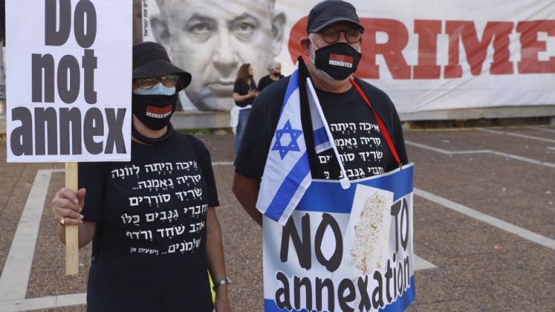 Tel Aviv (ParsToday/PressTV) - Mehrere tausend Israelis sind auf die Straßen von Tel Aviv gegangen, um gegen das äußerst kontroverse Vorhaben des Regimes zu protestieren, Teile des besetzten palästinensischen Gebiets zu annektieren, und haben gewarnt, dass dieser Schritt zu einer dauerhaften Apartheid führen würde.