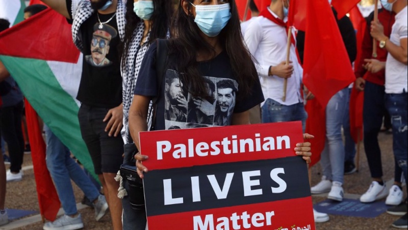 Sie hielten auch Schilder mit der Aufschrift "Keine Demokratie mit Apartheid" und "Palestinian Lives Matter", eine Anspielung auf die amerikanische Bewegung "Black Lives Matter".