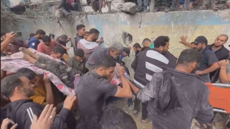Gaza (AFP) - Palästinenser durchsuchen die Trümmer nach Überlebenden und bergen tote und verletzte Kinder nach einem Angriff auf das Flüchtlingslager Jabalia im Gazastreifen.