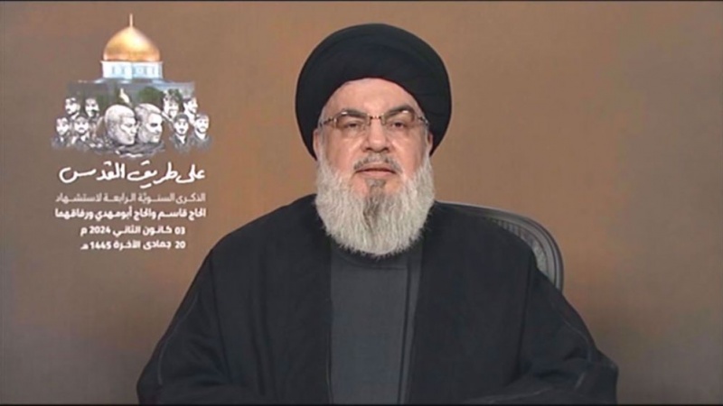 In einer am Mittwoch im Fernsehen übertragenen Rede sprach Sayyed Hassan Nasrallah sein Beileid zum Märtyrertum des stellvertretenden Leiters des Hamas-Politbüros, Saleh al-Arouri, und fünf seiner Kameraden aus, die einen Tag zuvor bei einem Drohnenangriff auf ihr Büro in Südbeirut getötet worden waren.
