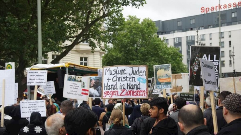 Die Freiheits- und Gerechtigkeitsliebenden marschierten quer durch Berlin trotz des Übermaßes an Hetze, die zuvor gegen die Demonstration zum Tag von Quds betrieben wurde. Entsprechend der demonstrierten Einheit am gestrigen Samstag lautete die Hauptparole der Unterstützer Palästinas: „Muslime, Juden und Christen, Hand in Hand gegen Zionisten“.