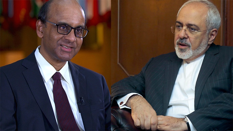 Singapur (IRIB/IRNA) - Irans Außenminister Mohammad Javad Zarif ist am Montagabend in Singapur mit dem Vizepremier und Finanzminister des Landes, Tharman Shanmugaratnam, zusammengetroffen.