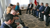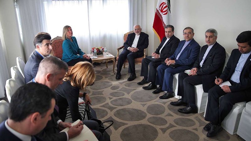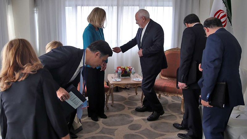 Zu Beginn dieser Sitzung, die am Aufenthaltsort des Außenministers Zarif stattfand, kondolierte Federica Mogherini den Tod einer Anzahl iranischer Bürger bei dem Terroranschlag am Samstag in Ahwaz, südwestlich von Iran. Irans Außenminister nannte den Anschlag schrecklich und sagte, das ist ein durch andere Mächte gesponserter Anschlag gewesen.