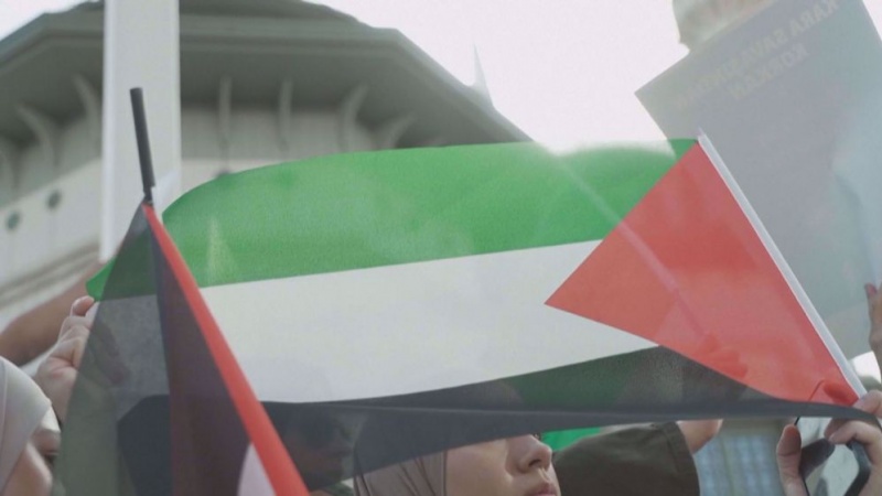 Das Filmmaterial zeigt Demonstranten, die palästinensische Flaggen halten und Parolen skandieren, in denen sie israelische Luftangriffe in Gaza anprangern und ihre Solidarität mit den Palästinensern zum Ausdruck bringen. Die Demonstranten brachten ihre unerschütterliche Unterstützung für Gaza zum Ausdruck und bekräftigten, dass Widerstand der einzige Weg sei, das Recht auf Befreiung des Landes zurückzugewinnen.