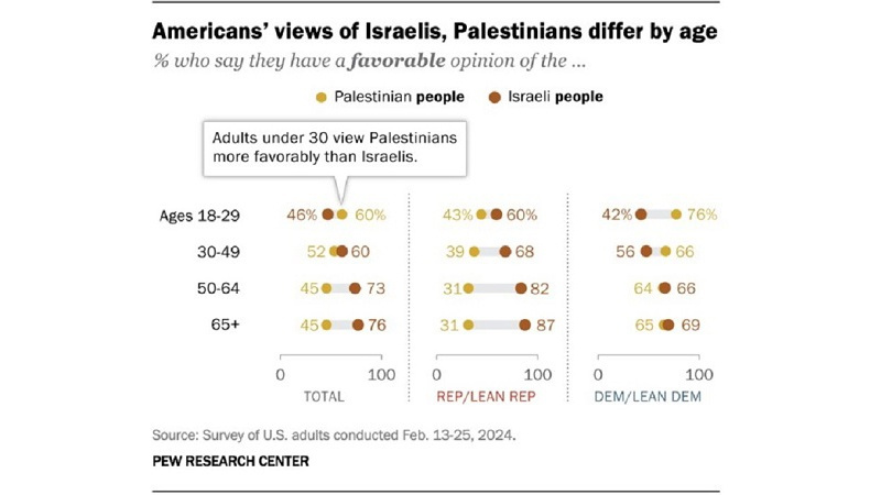 ParsToday – Laut einer im April veröffentlichten Umfrage hat die neue Generation der Amerikaner im Gegensatz zu den älteren Generationen eine positivere Einstellung zu den Palästinensern als zu den Israelis.