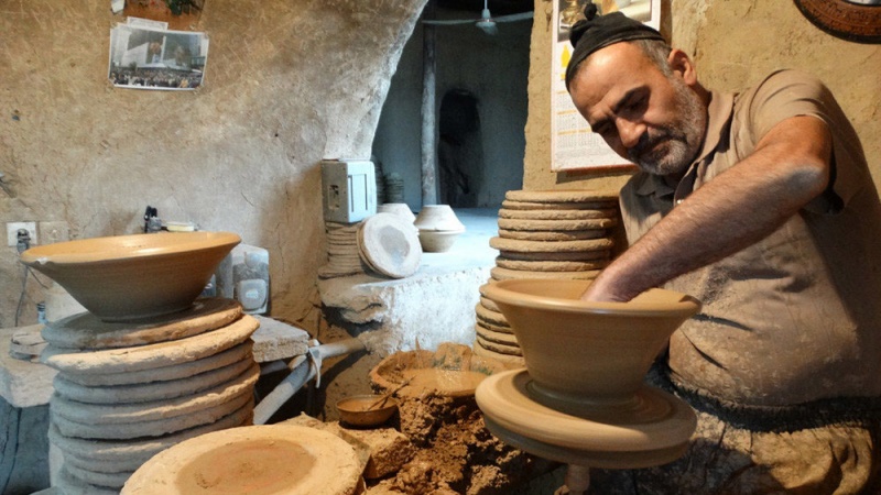 Die Tonerde für die Töpferware wird bei dem Dorf Dastdscherd, nahe bei Laledschin abgebaut und mit Lastwagen zu den Töpfereien gebracht und dort auf der Töpferscheibe zu schönen Gefäßen verarbeitet zu werden. Die Brennöfen bestehen aus Ziegelsteinen und aus zwei Teilen:einen unteren zum Anheizen und einen oberen, in dem die Töpferware gehärtet wird. Der obere Teil ist meist noch in mehrere Nischen aufgeteilt oder es werden tönerne Verstrebungen an den Wänden des Brennofens eingelassen. In diesen Nischen oder auf den Verstrebungen wird die geformte Töpferware aufgestellt und gebrannt.