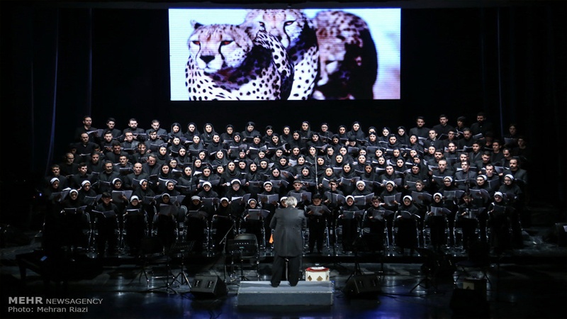 Die Choraufführung unter dem Titel "Heilige Erde", an der 150 Sänger und Sängerinnen teilnahmen, beeindruckte mit ihren Gesangsstücken über das Leben und die Menschen, Kriege und Tierjagd, Auswanderung und Obdachlosigkeit, das Abschmelzen des Polareises und weitere Umweltprobleme. In diesen Texten und mit den Begleitbildern auf der Leinwand wurden die Ausrottung von Tieren durch hemmungslose Jagd, die Auswirkung der Treibhausgase, der kollektive Selbstmord von Tieren, die Opfer von Aids und menschliche Tragödien infolge von Kriegen beklagt. Schon im vergangenen Jahr hat der Chor Namira auch mit einem Konzert das Publikum tief beeindruckt und den Inhalt ihrer Gesangsvorträge mit Bildern von Massengräbern und Verbrennungsöfen , der atomaren Bombardierung von Hiroshima und Nakazaki und den Verbrechen des zionistischen Regimes in Gaza unterstrichen. Aber weil diese Bilder sehr schrecklich sind, wurde dieses Jahr darauf verzichtet, sie erneut während der Choraufführung zu zeigen.