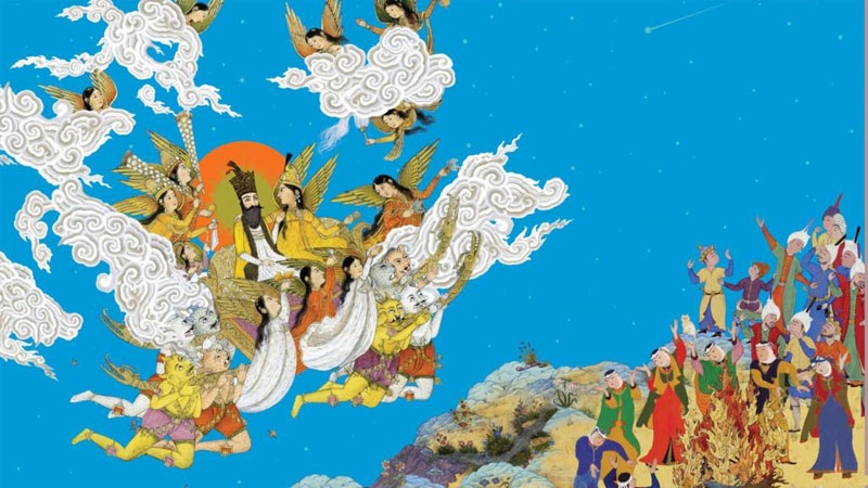 Das iranische Noruz ist den alten Mythen Irans entsprungen. Diese Mythen sind das gemeinsame Erbe aller Völker und Stämme im iranischen Kulturraum. Alte Texte wie das Königsbuch von Firdausi, die Noruzbücher, die Geschichtswerke von Tabari, Masudi , Meskavayh und Gardezi und viele weitere datieren das Noruzfest zum neuen iranischen Jahr im Frühling auf die Zeit des Dschamschid zurück, eines legendären Königs der Pischdadiyan - des ersten Königsgeschlechts in der iranischen Mythologie. Es heißt: Als Dschamdschid auf seinem Thron saß, die Sonne auf sein Haupt schien und die Welt erhellte und ein neuer Tag begann, nannte Dschamdschid diesen Tag Noruz. Auch Firdausi weist in seinem Königsbuch auf diese Legende hin. Alle Völker besitzen Mythen, die Ideale Gedanken enthalten und ihnen zu einem besseren Leben verhelfen sollen. An diese Mythen knüpfen ihre Volksmärchen an. Ziel der Mythen ist es die Menschen auf die Stufe idealen Denkens zu verhelfen. Noruz und die Noruzsitten sind der gemeinsame Mythos aller Iraner und daher ähneln sich die Zeremonielle und die alten Bräuche des Noruzfestes bei allen Iranern im Kern und unterscheiden sich nur in Einzelheiten.