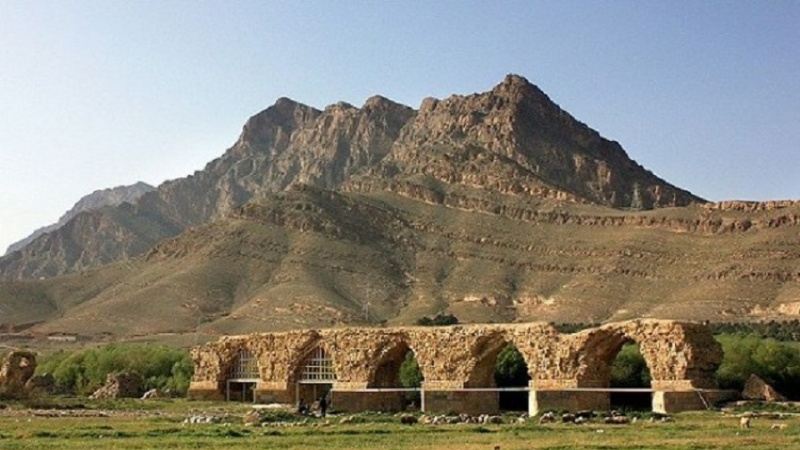 Ihrerzeit galt sie als Kunst- und Meisterwerk. Von ursprünglich 28 Bögen sind heute lediglich sechs übrig. Zeilen in Kufi-Schrift zieren eine Felsenschrift. Der Felsen ist zu einem Block gemeißelt worden. Mit den Zeilen wird das Eigentumsrecht über das Vieh geregelt. Die vier Ecken des Blocks weisen zur Schapouri-Brücke, zum Ziegel-Minarett, zum Falak-ul Aflak und zum Moses-Bassin. Der Fels wurzelt im Berg.