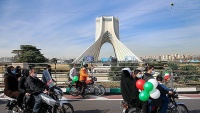 In capital Tehran, motorists took different routes to reach the Azadi (Liberty) Square, where President Hassan Rouhani delivered a speech via video-conference.