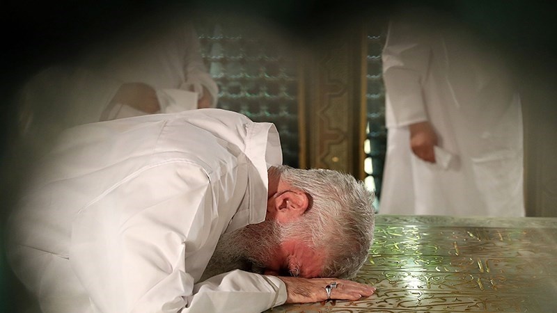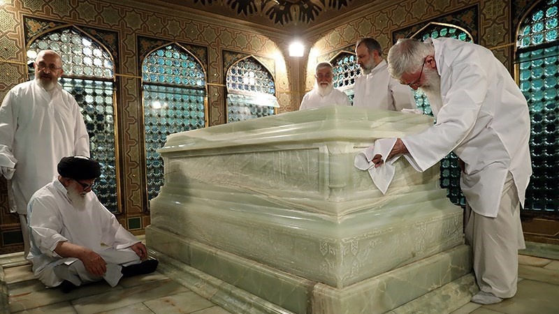 Leader performs dust clearing rite at Imam Reza's (AS) shrine