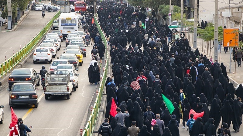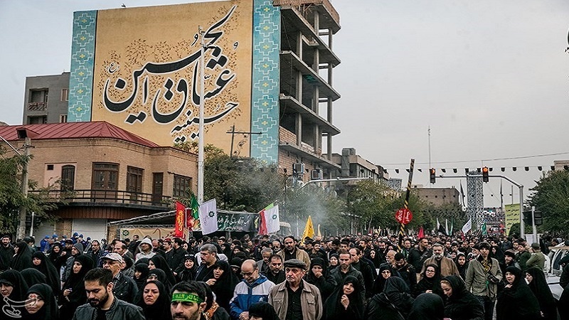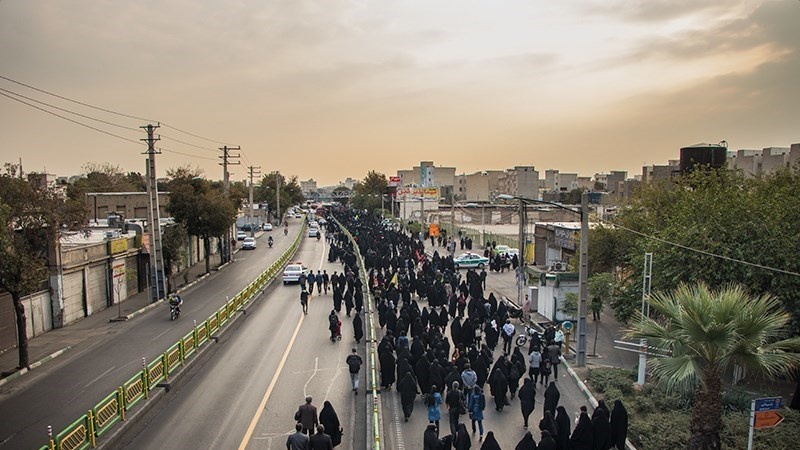 TEHRAN (Tasnim) – A huge crowd of people in the Iranian capital of Tehran took part in a procession on Tuesday morning in commemoration of Arba’een, which is one of the largest religious gatherings in the world, comes 40 days after Ashura, the martyrdom anniversary of Imam Hussein (PBUH), the third Shias’ Imam and Grandson of Prophet Mohammad (Blessings of God upon him and his progeny).