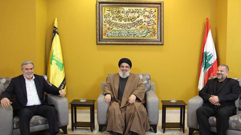Secretary General of Lebanon's Hezbollah resistance movement Sayyed Hassan Nasrallah on Saturday received Saleh al-Arouri, Deputy Head of the Hamas' Political Bureau, and Ziad al-Nakhaleh, the Secretary-General of Palestine's Islamic Jihad Movement, in Beirut.
