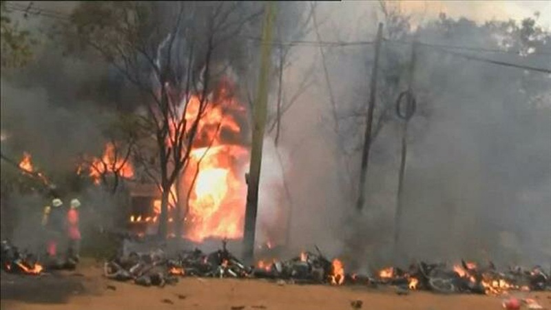 Video clips circulating on social media showed the charred remains of dozens of young men and burnt motorbikes. In footage from before the explosion, a large crowd was collecting liquid from puddles in yellow jerry cans.