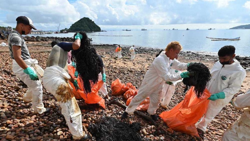 Oil-based spill pollutes coast of Taboga Island, Panama