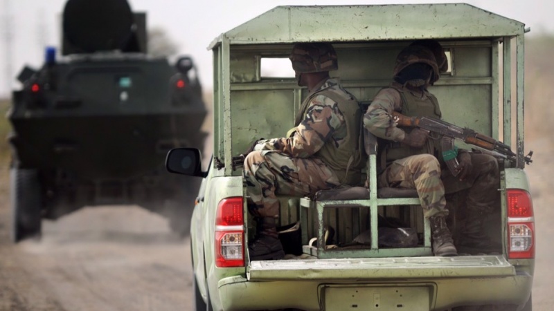 File photo of Nigerian soldiers patrolling the north of Borno state near a former Boko Haram terrorist camp. (AFP)