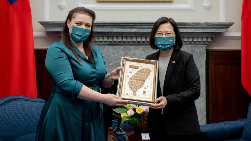 Alicia Kearns, the Head of the British Parliament's Foreign Relations Committee, spoke to reporters after meeting Taiwanese President Tsai Ing-wen.