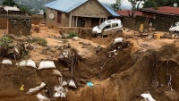 "On the National Road 1 there is a big hole. Only pedestrians can pass. We do not understand how the water cut the road," said local resident Gabriel Mbikolo.
