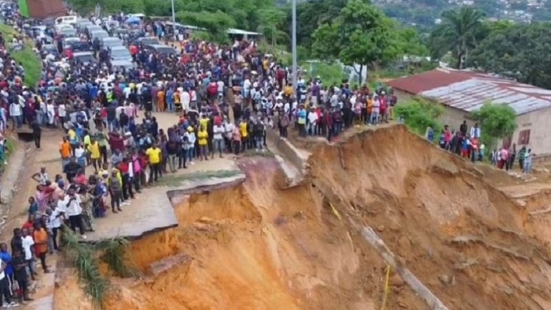 Images posted on Twitter by Congo's Government Spokesman Patrick Muyaya showed a major road that appeared to have subsided into a deep chasm, with crowds staring at the damage.