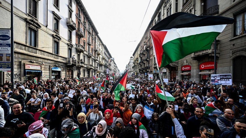 Hundreds of protesters have filled the streets of the Italian city of Milan to express solidarity with Palestine.
