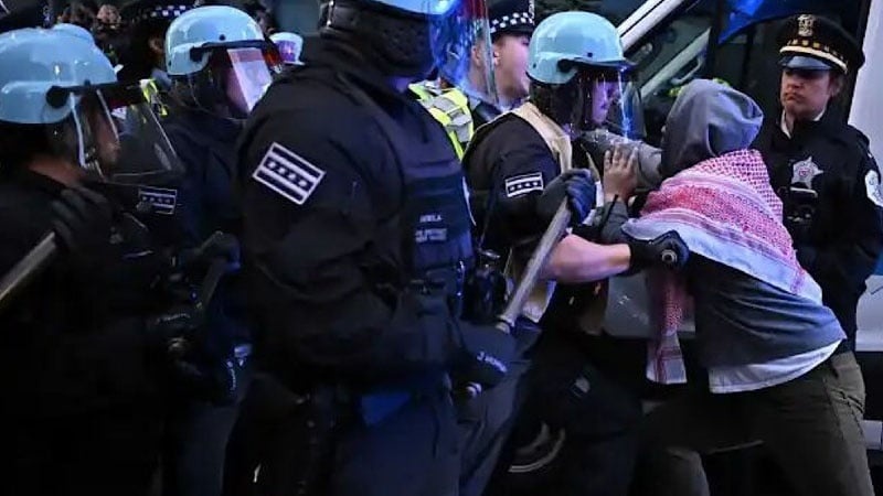 Clashes between American police and Palestine supporters outside the Israeli regime\'s consulate in Chicago