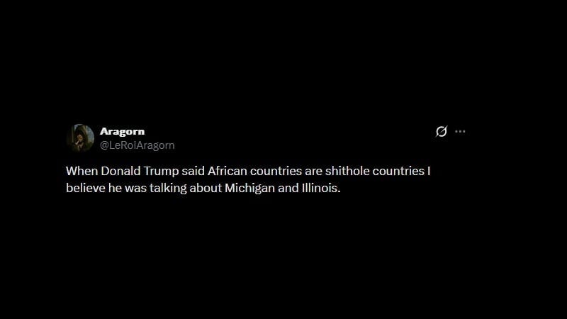 Another X user, LeRoi Aragon, alluding to European colonial history, wrote: “When Donald Trump said African countries are ‘shithole countries,’ I think he meant Michigan and Illinois.”