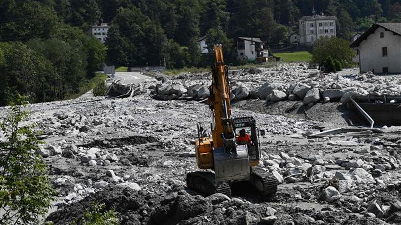 A geologist flew over the site in a helicopter early on Saturday to inspect the 3,369-meter (11,053 ft) Piz Cengalo mountain in the canton of Grisons to assess whether another slide is imminent.