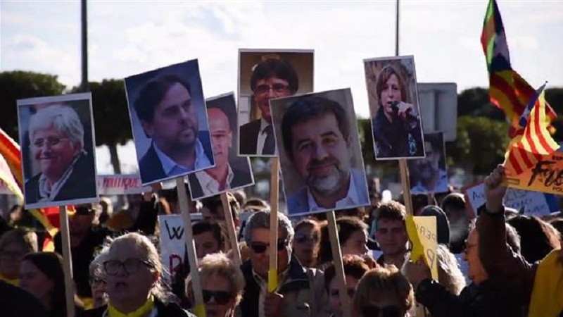 According to Press TV, campaigners chanted as they carried banners of imprisoned politicians through the streets of the town some 117 km from Barcelona.