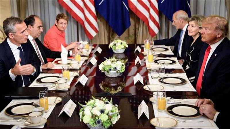 Trump was speaking at a press conference in front of NATO representatives ahead of a two-day summit.