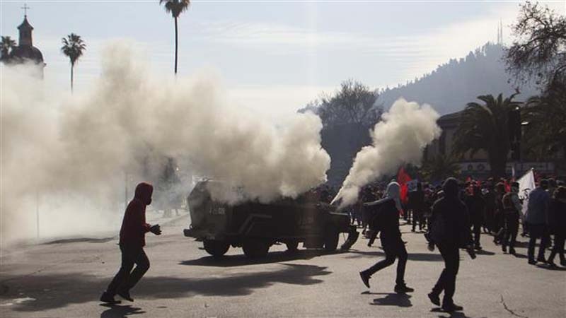 Protesters have clashed with police during a march on the 45th anniversary of the United States-backed military coup in Chile that put long-time dictator Augusto Pinochet in power.