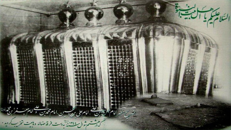 Alas, today the 8th of Shawwal is that tragic day in history when in the year 1345 AH (corresponding to 1924), the desert brigand of Najd, Abdul-Aziz Aal-e Saud, after massacring innocent Muslim men, women, and children in the Prophet’s city Medina, attempted to destroy the Prophet’s shrine. When he was dissuaded from doing so, he sent his Godless Wahhabi hordes to desecrate the Sacred Jannat al-Baqie Cemetery and raze to the ground the tombs of the elite of Islam, especially the towering majestic mausoleum over the blessed resting places of Four of the Prophet’s Twelve Infallible Heirs – Imam Hasan al-Mujtaba, Imam Zain al-Abedin, Imam Muhammad Baqer, and Imam Ja’far as-Sadeq (peace upon them).