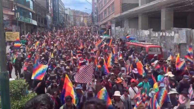 Los bolivianos vienen de zonas rurales y se suman a los manifestantes de El Alto que exigen el “retorno a la Presidencia de Morales”.