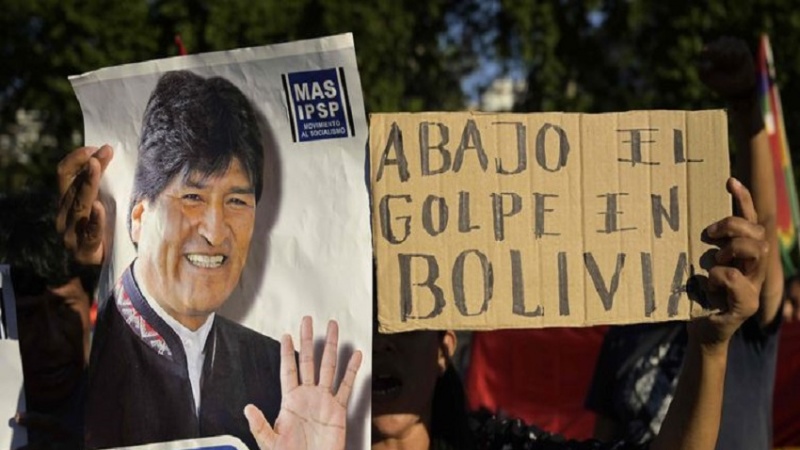 A medida que las protestas callejeras se intensificaron, Evo Morales inicialmente acordó celebrar una segunda elección, pero después anunció su dimisión presionado por los altos generales de Ejército con el objetivo de establecer la paz y tranquilidad en su país y salió rumbo a México, país que le dio asilo.