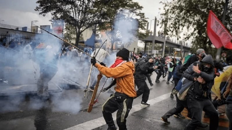 Pars Today - Durante una manifestación en Bogotá, la capital colombiana, un grupo de manifestantes atacó la embajada de EE.UU. en el país suramericano, declarando su apoyo a los pueblos de Palestina y Venezuela y protestando contra las políticas de Washington.
