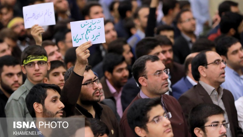 El ayatolá Jamenei ha recibido este miércoles a miles de estudiantes y universitarios en Teherán, capital iraní, en víspera del Día del Estudiante que se celebra mañana jueves.