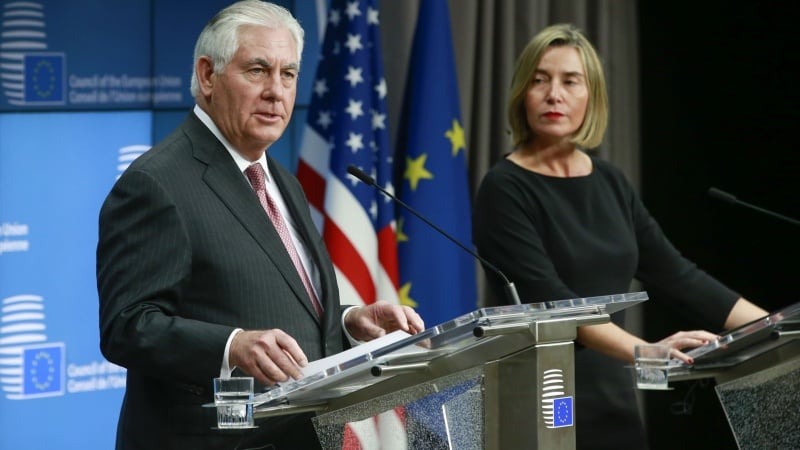 Rex Tillerson volvió a denunciar el papel de Irán en la región, particularmente en Yemen, Irak y Siria, pero en esta ocasión expresó su apoyo al JCPOA, en una rueda de prensa que celebró el martes en Bruselas junto a la Alta Representante de la Unión Europea (UE) para Asuntos Exteriores y Política de Seguridad, Feredica Mogherini.