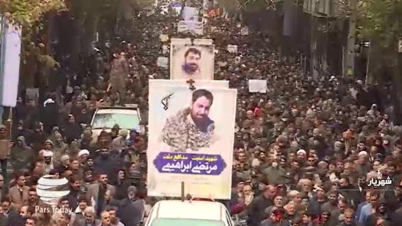 Según informan medios locales, una multitud ha asistido al funeral de los mártires Morteza Ebrahimi, un comandante del Batallón Imam Hosein del Cuerpo de Guardianes de la Revolución Islámica (CGRI) en la localidad de Malard —en la provincia de Teherán—, y Mostafa Rezai, un empleado de la Municipalidad de Malard.