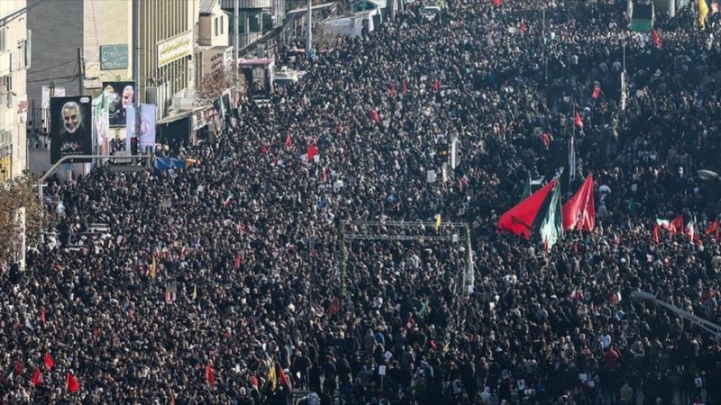 “Las asistencia multitudinaria en Teherán, vista por televisión, parecía ser la mayor desde 1989, en el funeral del fundador de la República Islámica, el Imam Jomeini (que en paz descanse)”, ha comentado la agencia británica de noticias Reuters, en referencia a las ceremonias de luto de este lunes en honor al comandante de la Fuerza Quds, del Cuerpo de Guardianes de la Revolución Islámica (CGRI), el teniente general Qasem Soleimani, al subcomandante de las fuerzas populares iraquíes Unidades de Movilización Popular (Al-Hashad Al-Shabi, en árabe), Abu Mahdi al-Muhandis; y algunos de sus compañeros, asesinados en Bagdad por EE.UU.