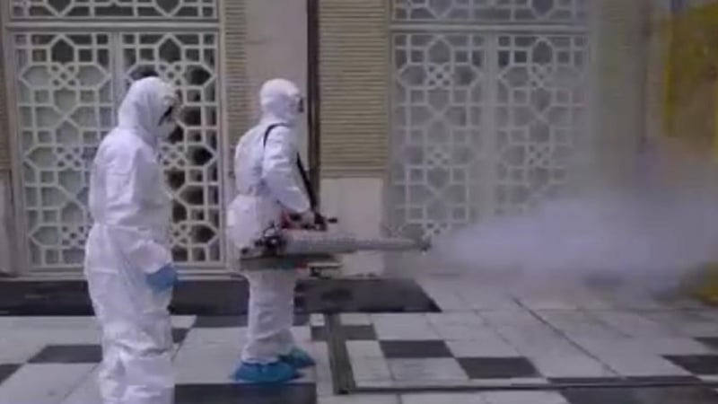 Video: Rocían desinfectante en santuario de Imam Reza(P) en Mashad