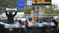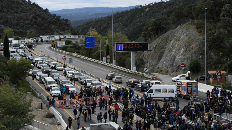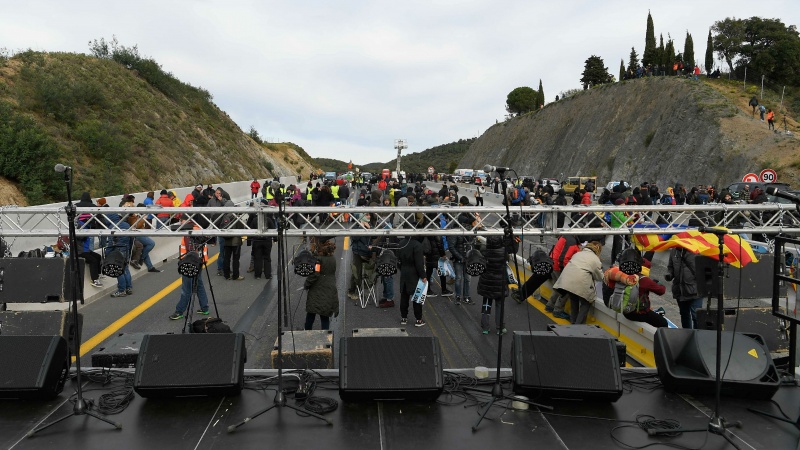 La plataforma Tsunami Democràtic ha cortado el paso fronterizo con Francia en protesta para pedir una solución a la crisis catalana, 11 de noviembre de 2019.