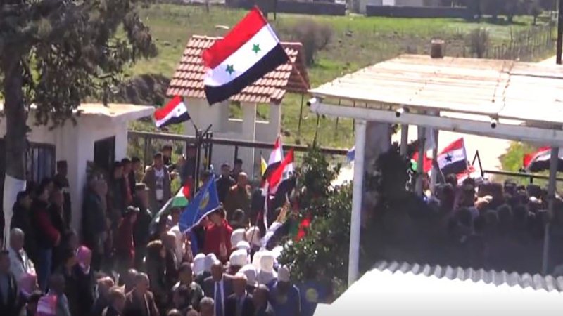 Los manifestantes se solidarizaron con los residentes de los altos del Golán y aseguraron que el control de esa zona volverá a estar bajo el control de las fuerzas sirias tarde o temprano.