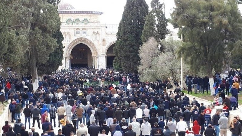 Al menos 180 mil palestinos rezan en Mezquita Al-Aqsa+video