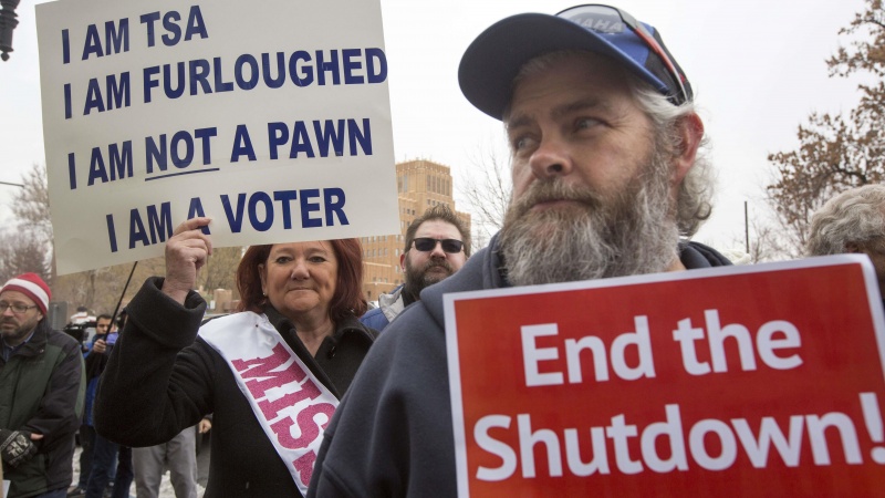 Los habitantes de la ciudad de Ogden, (estado de Utah, oeste de EE.UU.), se congregaron para protestar contra el cierre del Gobierno, 10 de enero de 2019.