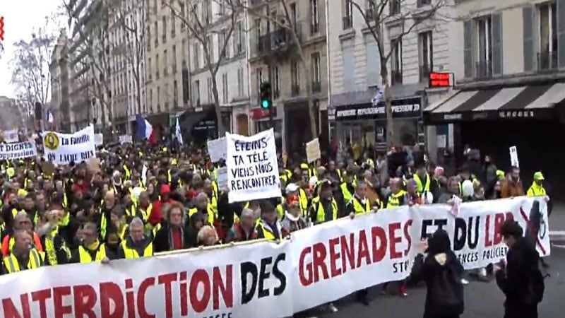 Los “chalecos amarillos” han vuelto a salir a las calles de Francia por duodécimo sábado consecutivo. Han sido cerca de 60 000 los “chalecos amarillos” en toda Francia que en esta ocasión han querido rendir homenaje a los heridos por la policía desde el pasado 17 de noviembre. Heridos como Franck, de 20 años, que perdió un ojo por una bala de goma. Una jornada de manifestaciones que ha conocido nuevos episodios de violencia.